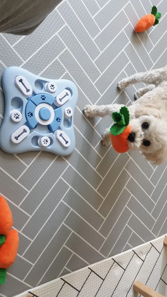 - Interactive Puzzle Toys: This interactive puzzle toy provides a fun way for pets to find food by sliding parts, enhancing their eating experience and IQ.